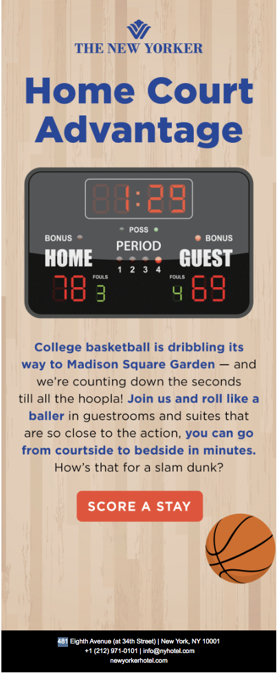 Staying at The New Yorker leaves you steps from Penn Station, Amtrak, and Macy’s and just blocks from the Empire State Building and Hudson Yards. That’s a definite home court advantage, whether you’re a student staying there for the semester, a tourist visiting Manhattan, a businessman in town for a meeting or convention, or a fan who wants to catch a game or concert at Madison Square Garden.