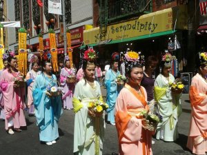 The beauty and pageantry of yesterday’s parade was stunning, even by Chinatown’s colorful, noisy standards. With the sun shining above, and the brilliant hues of saffron and fuschia billowing against the dingy, dirty gray of the streets, it was easy to believe that Buddha’s birthday was waiting expectantly around the corner, and that it would usher in a time of greater compassion, illumination, and peace.